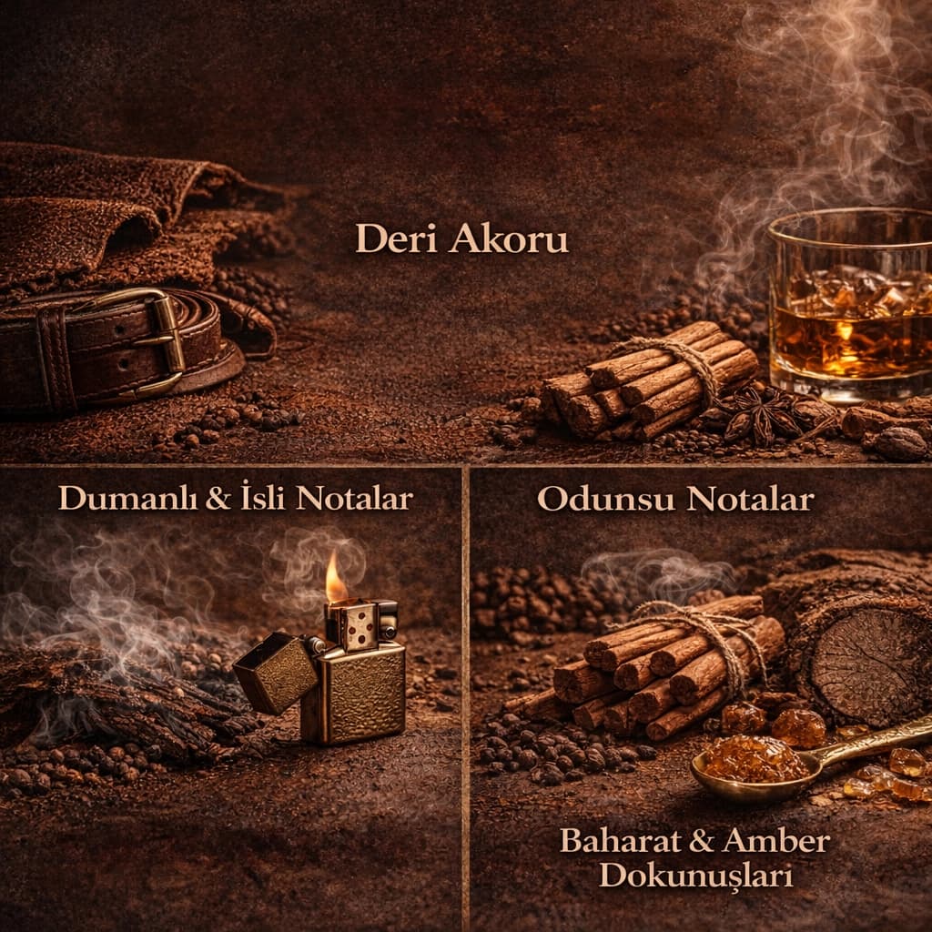 Deri parfümleri, kokusunu işlenmiş deri hissi veren özel akorlardan alır. Gerçek deri yağı kullanılmaz; bunun yerine isli, dumanlı, hayvansı veya reçineli notalarla “deri etkisi” yaratılır.